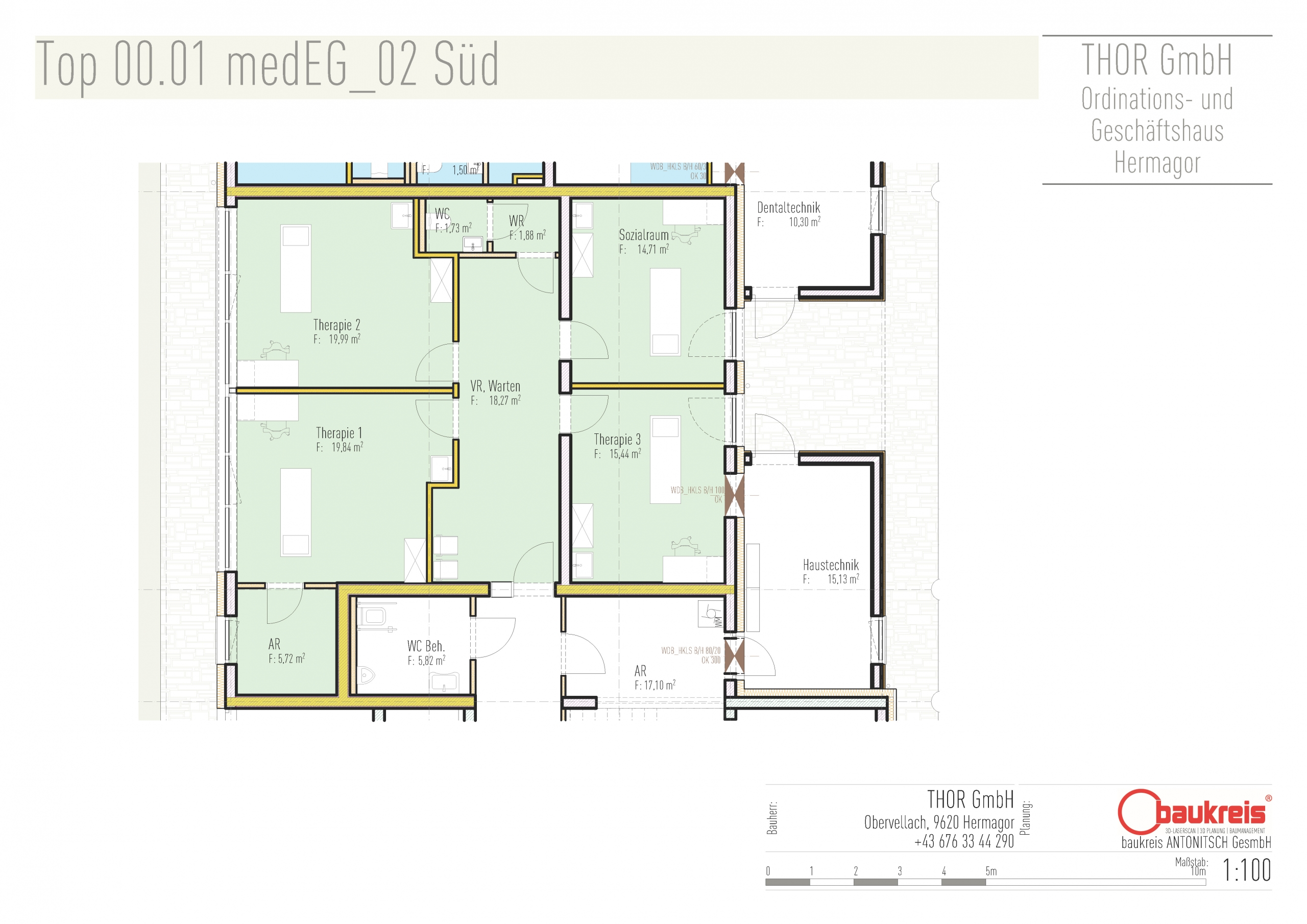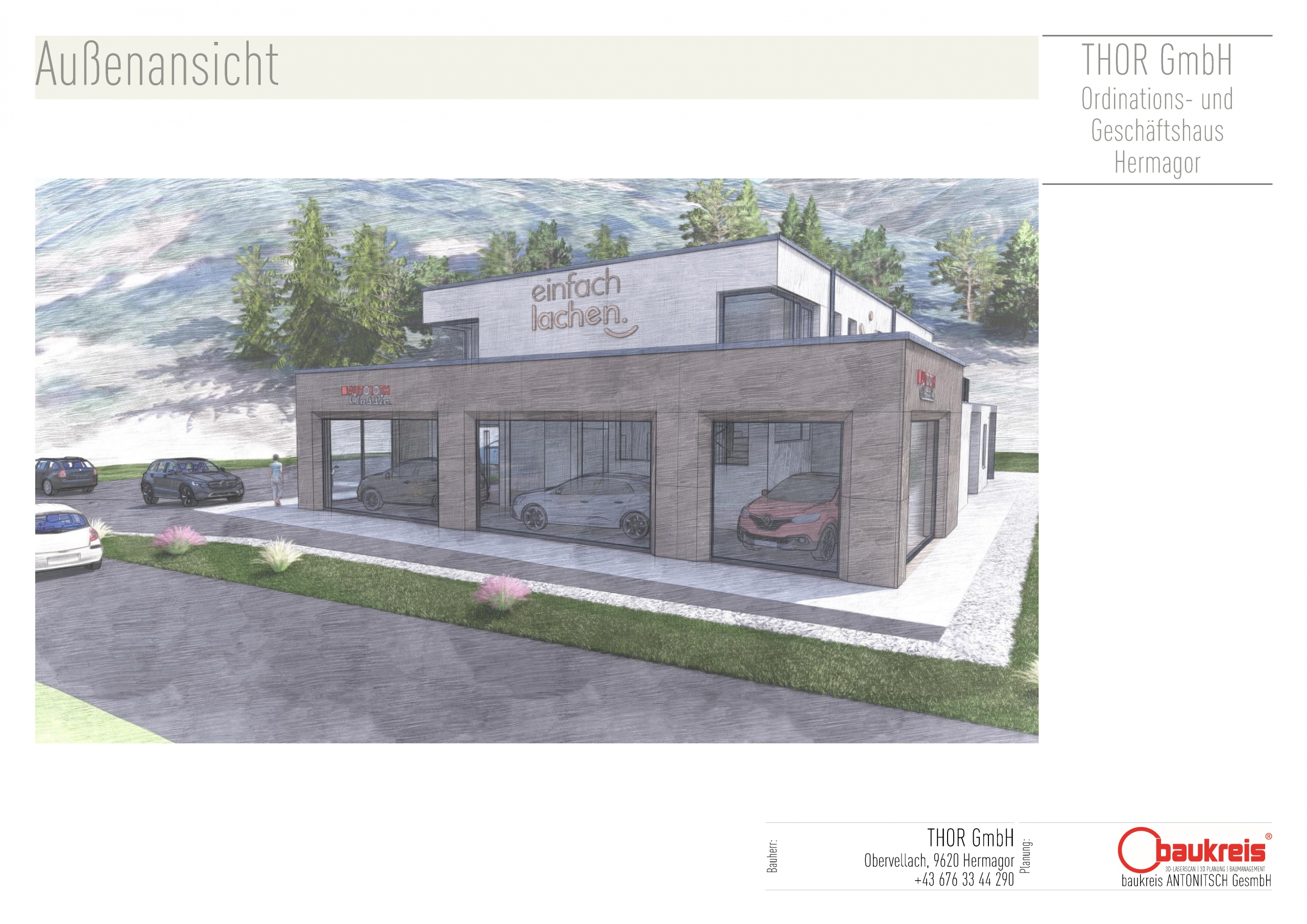 Das Ärzte- und Geschäftshaus befindet sich derzeit in Errichtung, die geplante Fertigstellung erfolgt im Mai 2021. Im Erdgeschoß befinden sich drei Mieteinheiten, wobei zwei Mieteinheiten als Ordination oder Büro vermietet werden. Der im Erdgeschoß situierte Schauraum und die sich im Obergeschoß befindliche Zahnarztpraxis sind bereits vermietet. Der moderne und barrierefreie Neubau bietet Ihnen den höchsten Standard. Das Gebäude sowie die Mieteinheiten verfügen über modernste Gebäudetechnik wie zum Beispiel Fußbodenheizung und Klimatisierung der Räume über den Fußboden und gekühlter Decke (Bauteilaktivierung). Die Fenster verfügen über elektrische Raffstores. Es stehen genügend Parkplätze für Ihre Patienten und Mitarbeiter zur Verfügung. Die Höhe der Miete sowie der Betriebs- und Heizkosten entnehmen Sie bitte der Preis- und Detailinformation. Preisinformation pro m²: Miete (exkl. MWSt) 13,00/1,20 plus Betriebskosten (exkl. MWSt) 2,70/1,20 Heizkosten (exkl. MWSt) 0,80/1,20 Kaution: (3 Bruttomonatsmieten) Gerne leiten wir Ihre Anfrage direkt an Herrn Bernd Roth, Thor GmbH weiter!